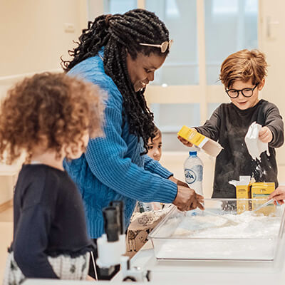 What does your child enjoy? Where do their talents lie? That’s what it’s all about at Kindergarden. Our pedagogical professionals tune into your child’s interests. Indoors and outdoors, there’s so much to do, from tech to theatre, and from cooking to sports and games. This way, your child discovers what they love and their talents naturally begin to flourish.