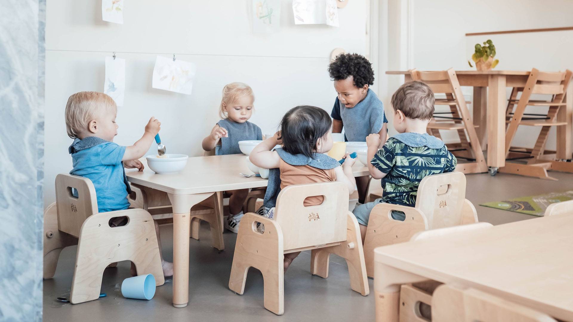Just like you, we place great value on healthy and varied nutrition. We introduce your child to different flavors, which is important for a healthy eating pattern. At most locations, a household staff member prepares a fresh, warm lunch every day. Where cooking is not done, the meal is either delivered or prepared by Kindergarden chefs at a central location and then distributed. And then we sit down at the table – always together, because seeing others eat encourages eating!