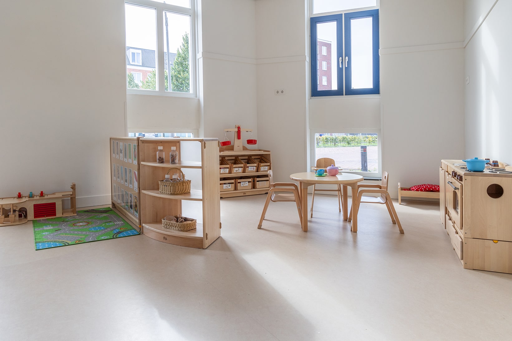 Our childcare center, Kindergarden Almere, is located in the Europakwartier. The golden crown above the entrance already indicates that you're dealing with a unique building. It was specifically designed for childcare. You will experience it immediately when you enter: a pleasant atmosphere and plenty of personal attention. Because of that, everyone - children, parents, and staff - immediately feels at home.