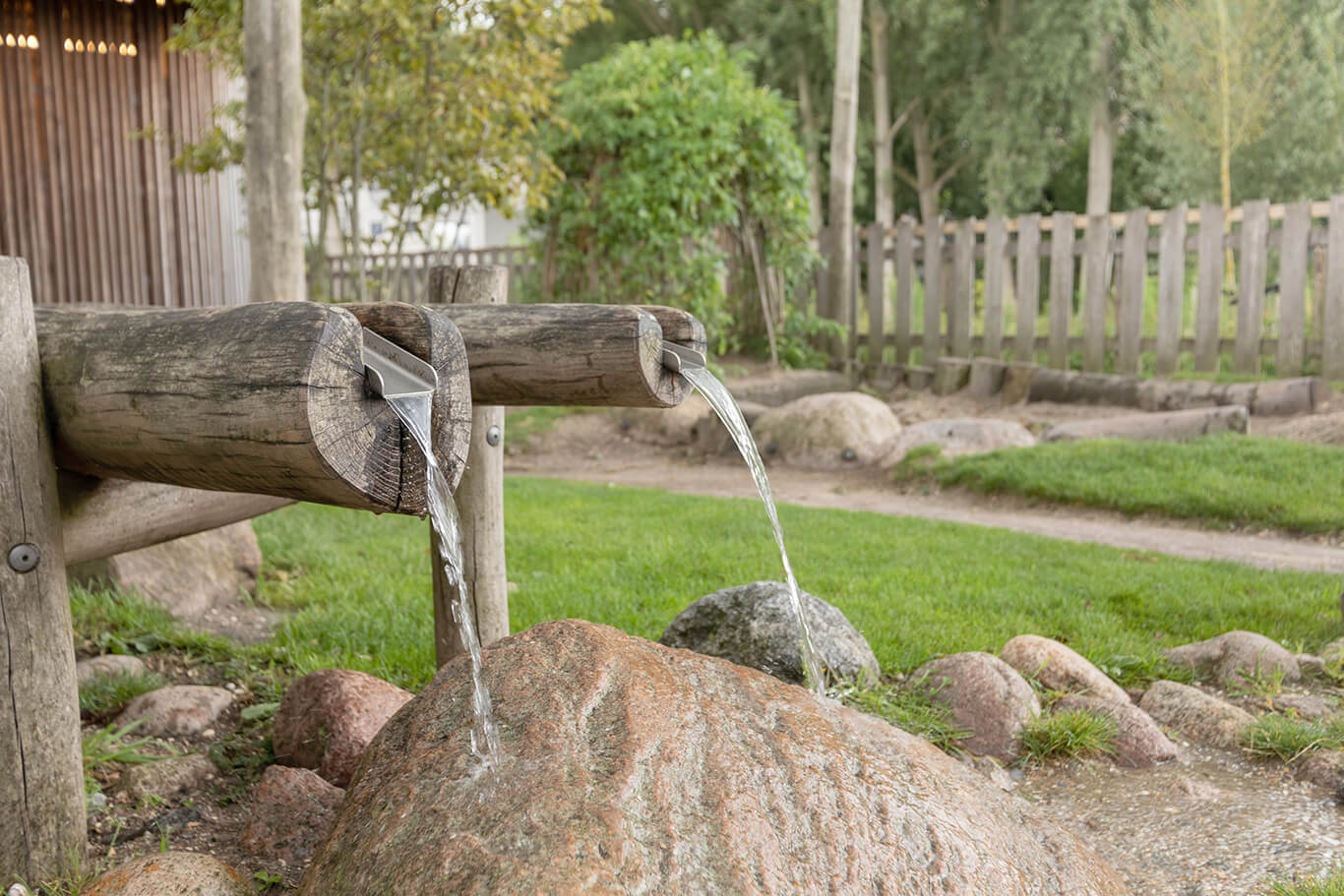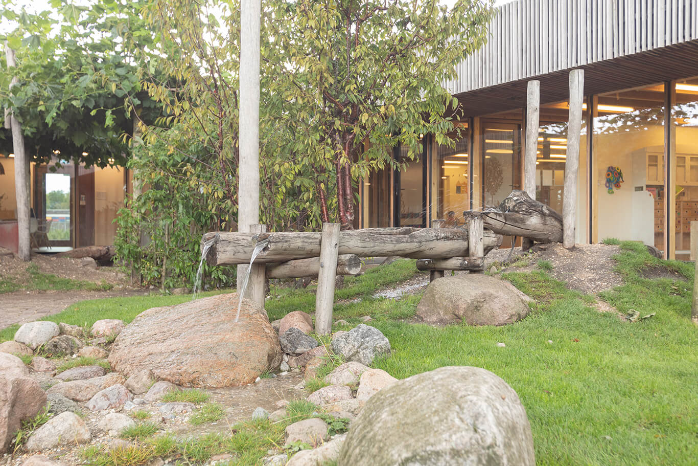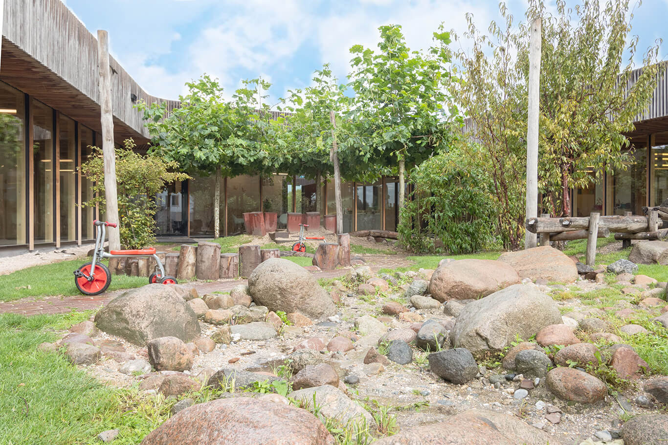 Outdoors, children have more freedom and tend to feel more independent, and our discovery garden – of which we couldn’t be more proud! – is designed specifically for this purpose. The children can hide there, get together, or spend some time on their own if they like. Through the glass facade, you can admire our yard, with its slopes, water stream, bridge complete with mini-waterfalls, sand, shells, and real grass.
