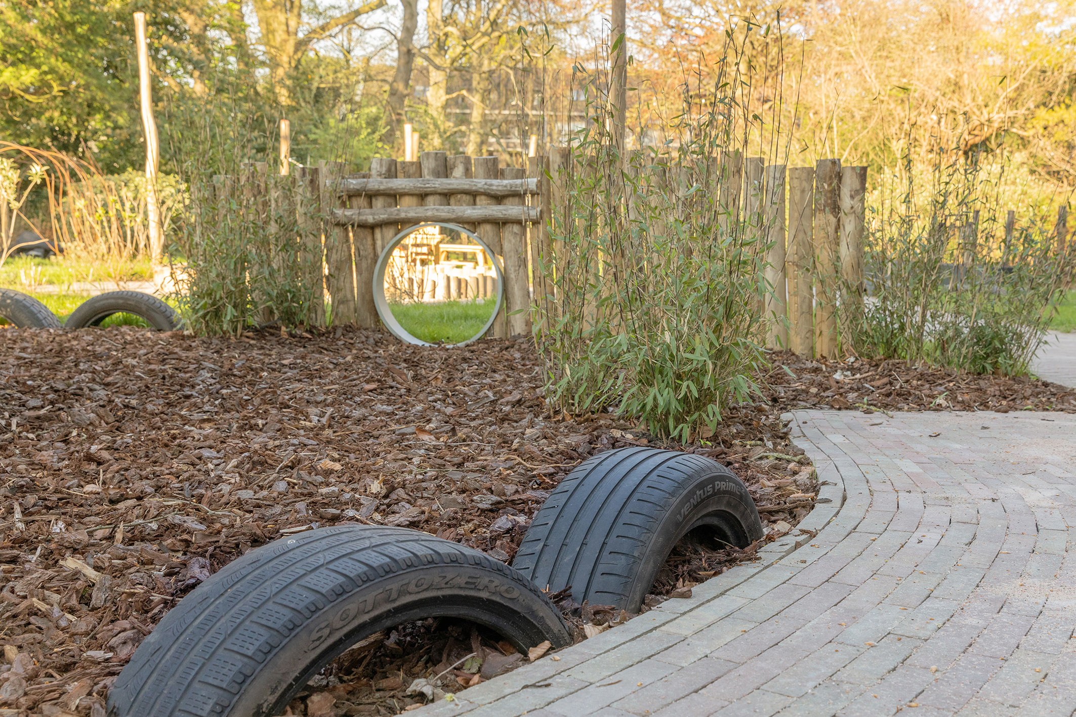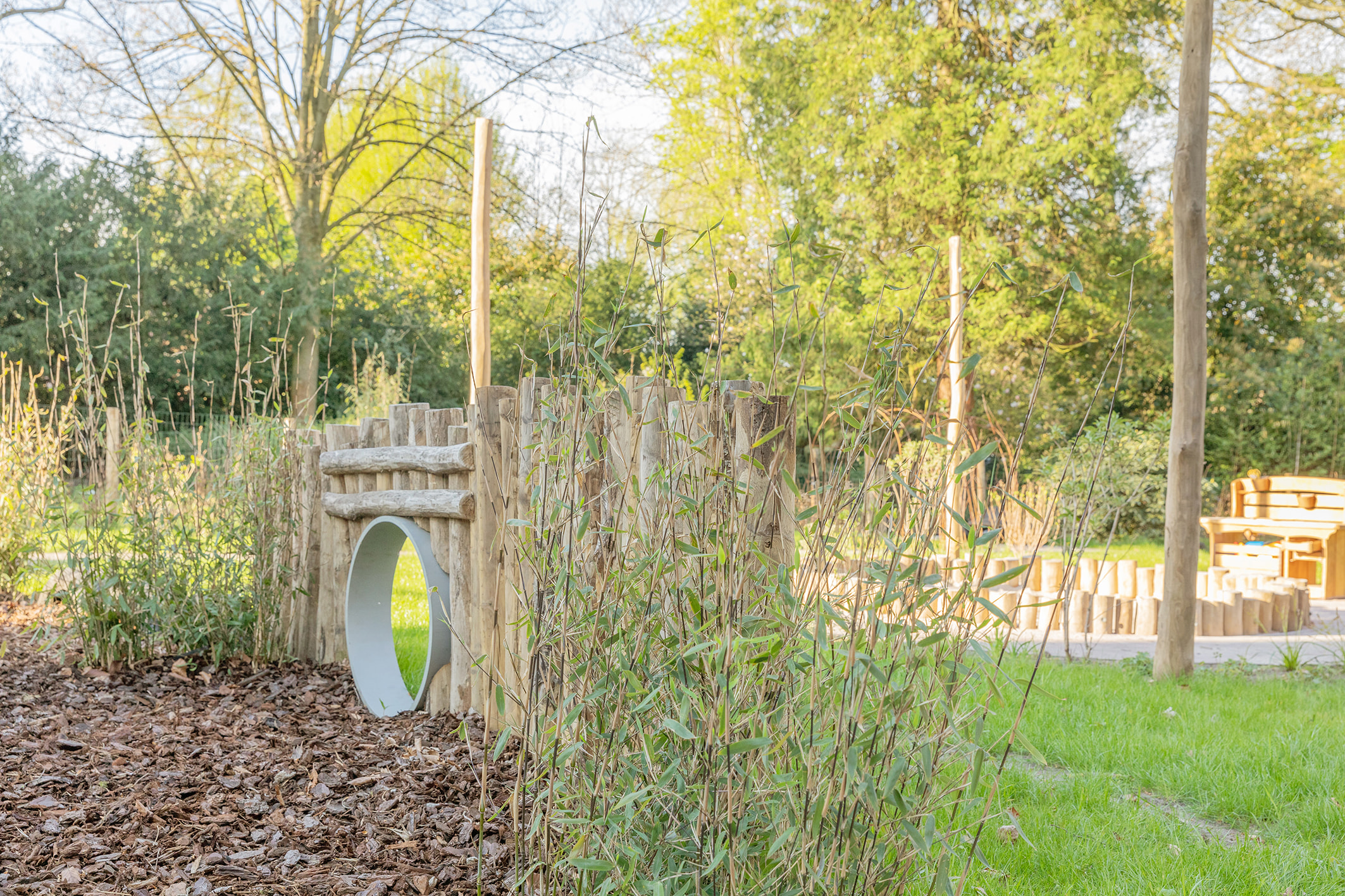 Adventurous gardenOur large green garden with shaded areas really invites children to explore and play. Everything is designed to encourage a child to discover in our adventurous garden.