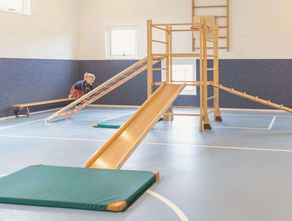 Outside, children experience more freedom and independence. This is what our large garden, which surrounds the establishment, is all about. We have a bird's nest swing and plenty of space to run, climb and hide. We also have a beautiful football pitch for our professional footballers of the future where they can practice to their hearts' content.