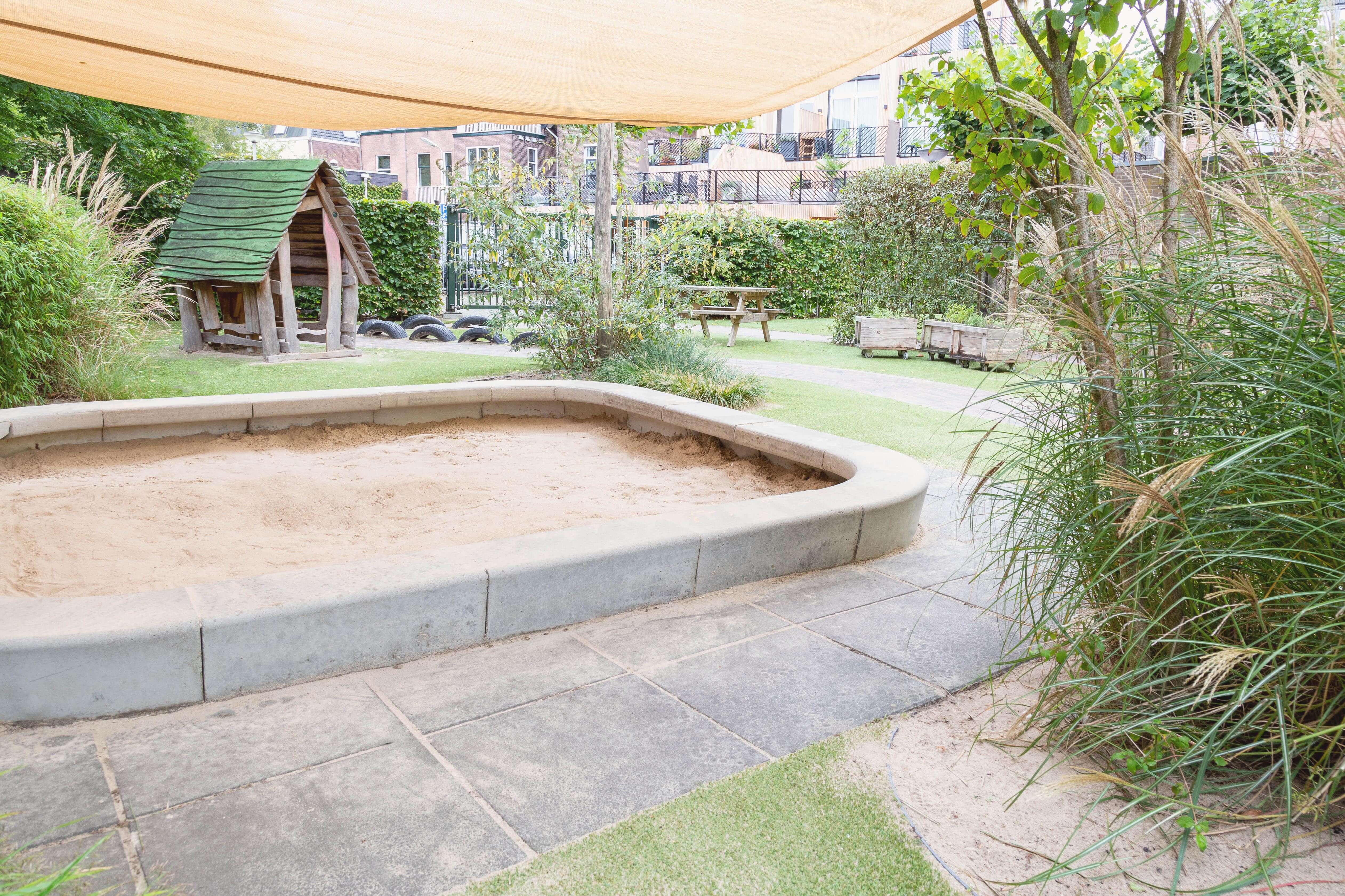 In onze mooie tuin vind je alles: van een afgeschermd babyhoekje tot bamboestruiken waarin je je kunt verstoppen. Maar ook een fietspad en moestuinbakken waar we samen kruiden en bloemen in kweken.