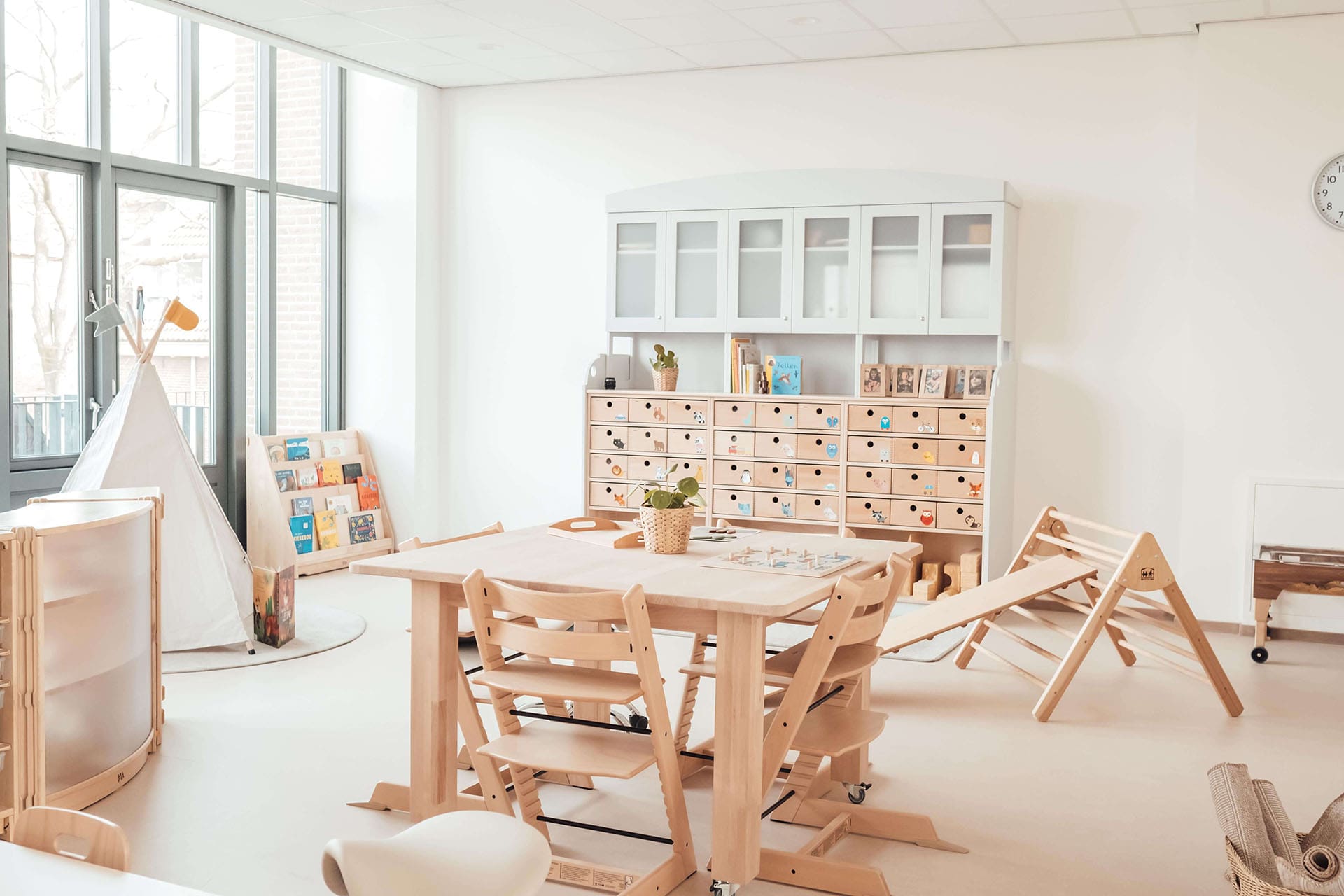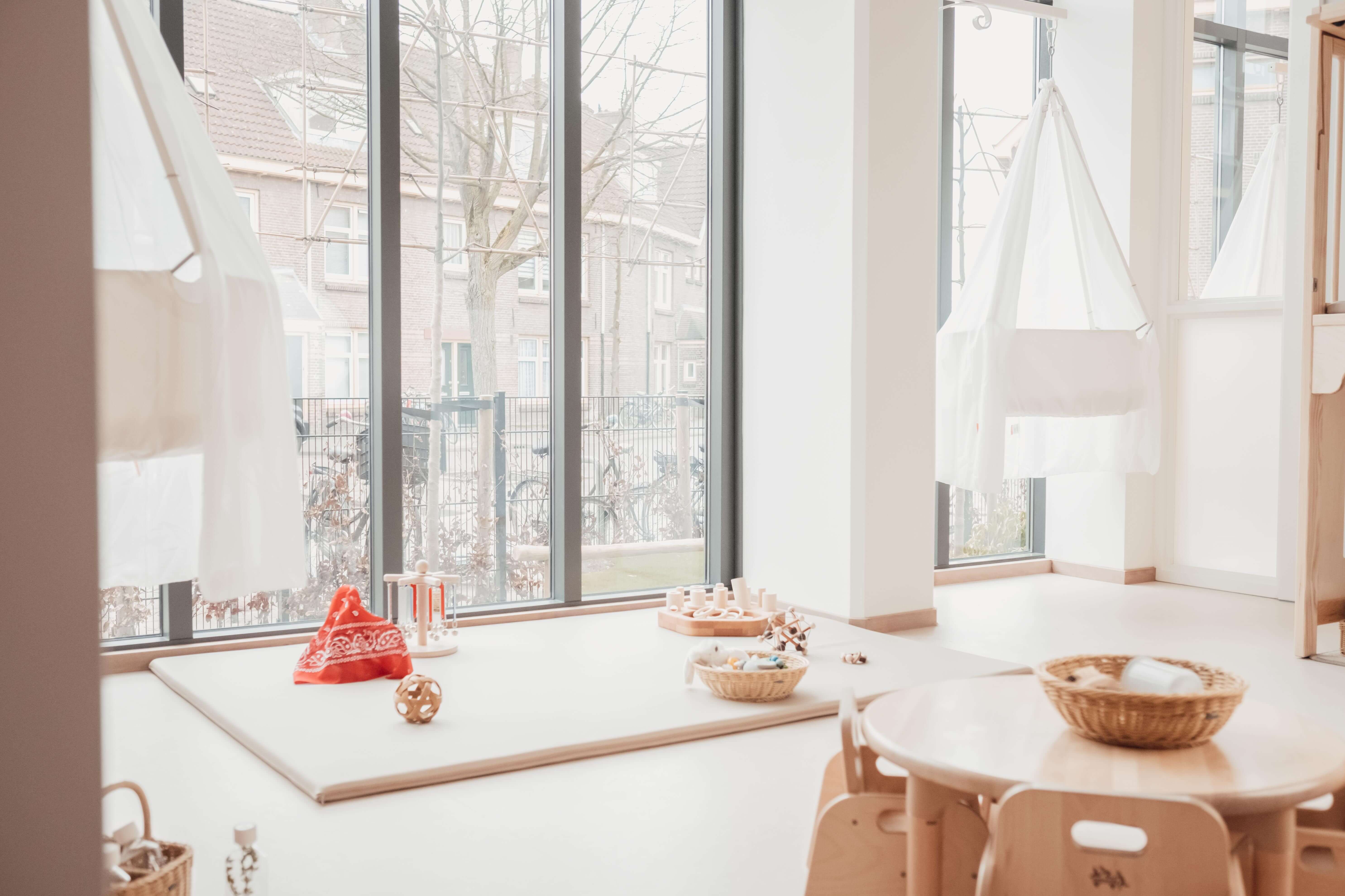‘Wat een licht! En veel groter dan ik had verwacht.’ Deze woorden horen we vaak sinds de opening van onze eerste Kindergarden vestiging in Noord, begin 2021. Dit voormalig postkantoor maakt iedereen blij, ook de allerkleinsten. Want voor de meeste van onze babygroepen hebben we bijvoorbeeld een eigen aangrenzende babytuin waar je kindje in een afgeschermd gedeelte veilig van de buitenlucht kan genieten. Prettig toch?