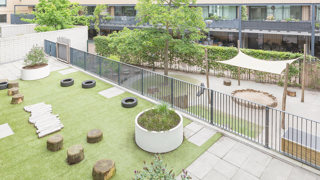 Spelen in de babytuinIn onze babytuin genieten de baby’s veilig van de buitenlucht in hun eigen afgeschermd tuin. Terwijl de oudere kinderen zich ook kunnen uitleven met spelen in de zandbak of kunnen racen op de kleine fietsjes of skelters.