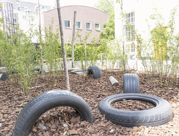 Avontuurlijke tuinOnze grote groene tuin met schaduwplekken nodigt echt uit om te gaan ontdekken en spelen. Alles zorgt ervoor dat een kind wordt uitgenodigd om te gaan ontdekkenin onze avontuurlijke tuin.