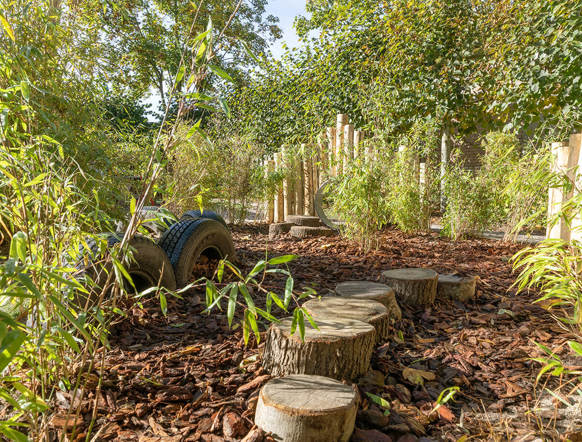 Avontuur in de ontdektuin Avontuur in de ontdektuinOnze grote, schaduwrijke tuin nodigt echt uit om te gaan ontdekken en spelen. Voor de baby’s is een afgeschermd stuk, waardoor de oudere kinderen zich naar hartenlust kunnen uitleven op het ontdekpad, het fietsparcours en hun evenwicht kunnen oefenen op de halve autobanden.