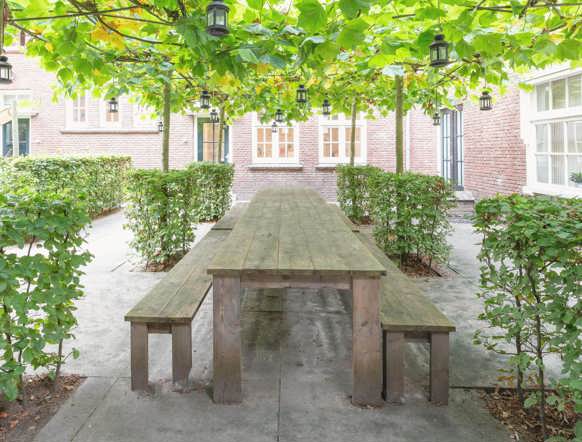 Onze parkachtige kloostertuin is een oase van rust. Ideaal om te picknicken en natuurlijk kunnen de kinderen er spelen, tenten bouwen en in bomen klimmen. Ook is er een zandbak met waterpomp en een oprit waar goed gevoetbald kan worden.