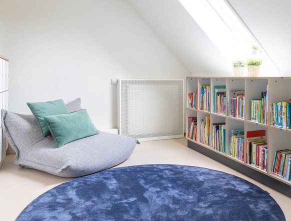 Rustige leeshoekEven tot rust komen. Even in jezelf kunnen keren door rustig een boek of tijdschrift te lezen. De keuze is enorm: van prentenboeken tot leesboeken. Veel kinderen kruipen ‘s middags even op de bank om een Donald Duck te lezen.