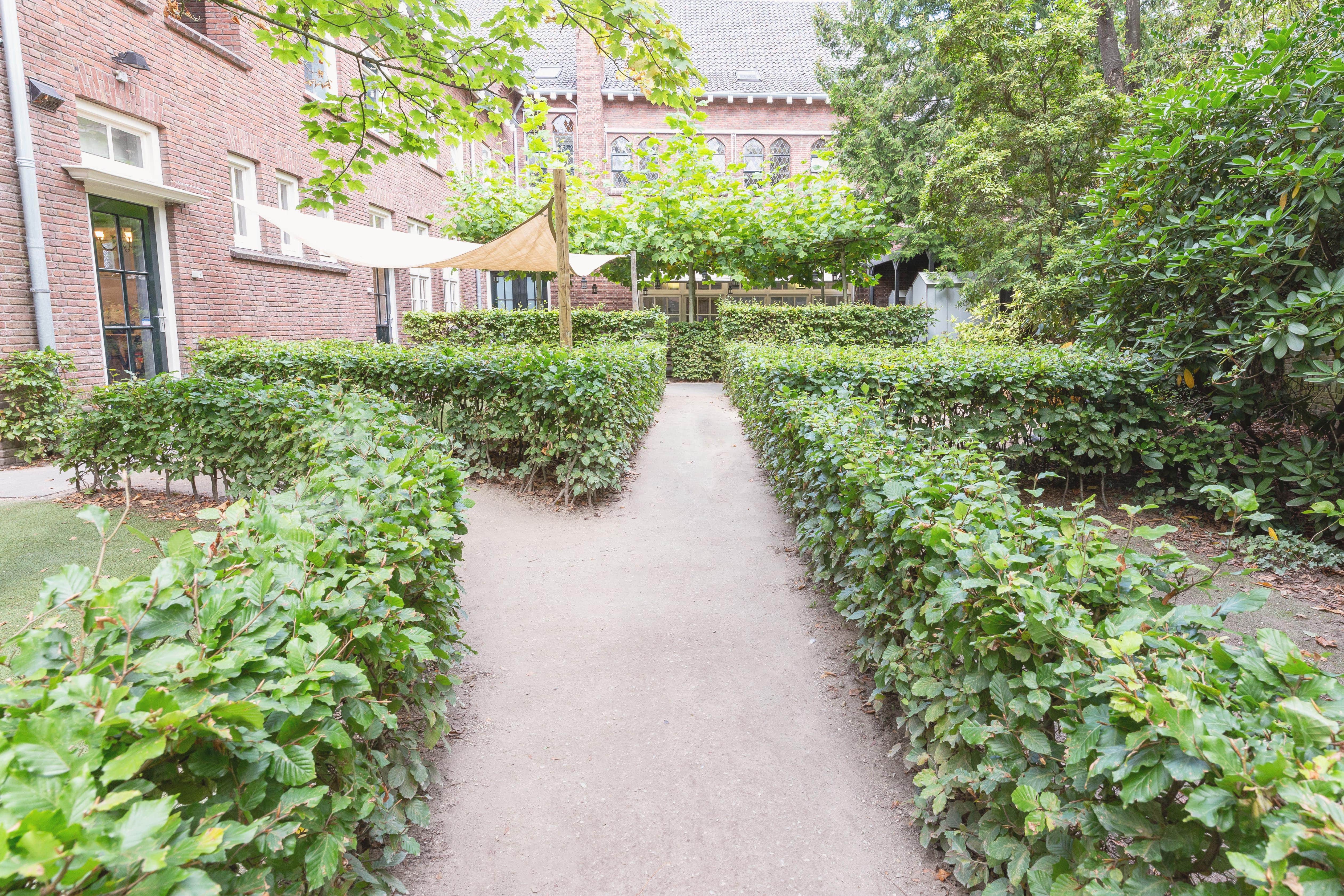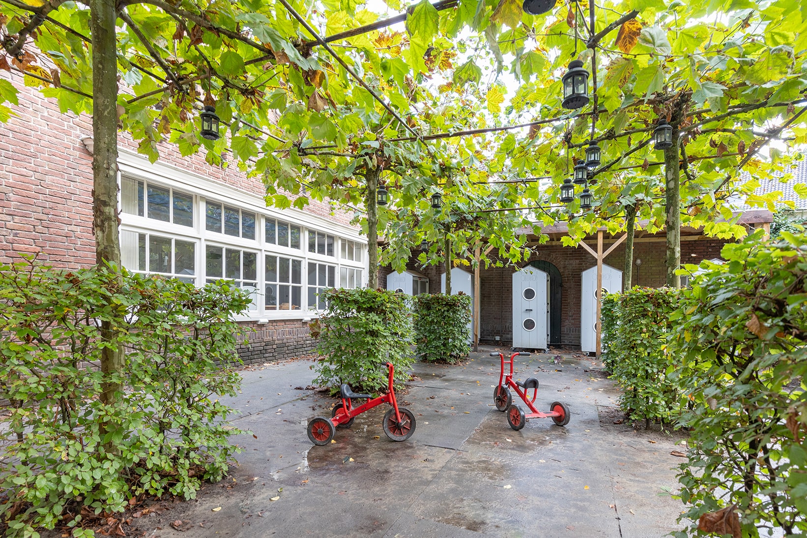 Op zolder bevinden zich onze bieb en het atelier, die ook door onze BSO worden gebruikt. Onze parkachtige kloostertuin is een oase van rust. Ideaal om te picknicken en natuurlijk kunnen de kinderen er spelen, tenten bouwen en zelfs in bomen klimmen. Net als in de Scandinavische landen slapen er ook kindjes buiten: heel gezond!