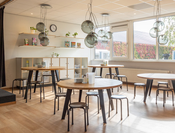 Gezellige loungeruimteOnze vestiging heeft een warme en huiselijke sfeer. In de woonruimte kunnen kinderen fijn ontspannen na een drukke dag op school. Even heerlijke chillen op de bank of in de zitzakken met een strip of goed leesboek.
