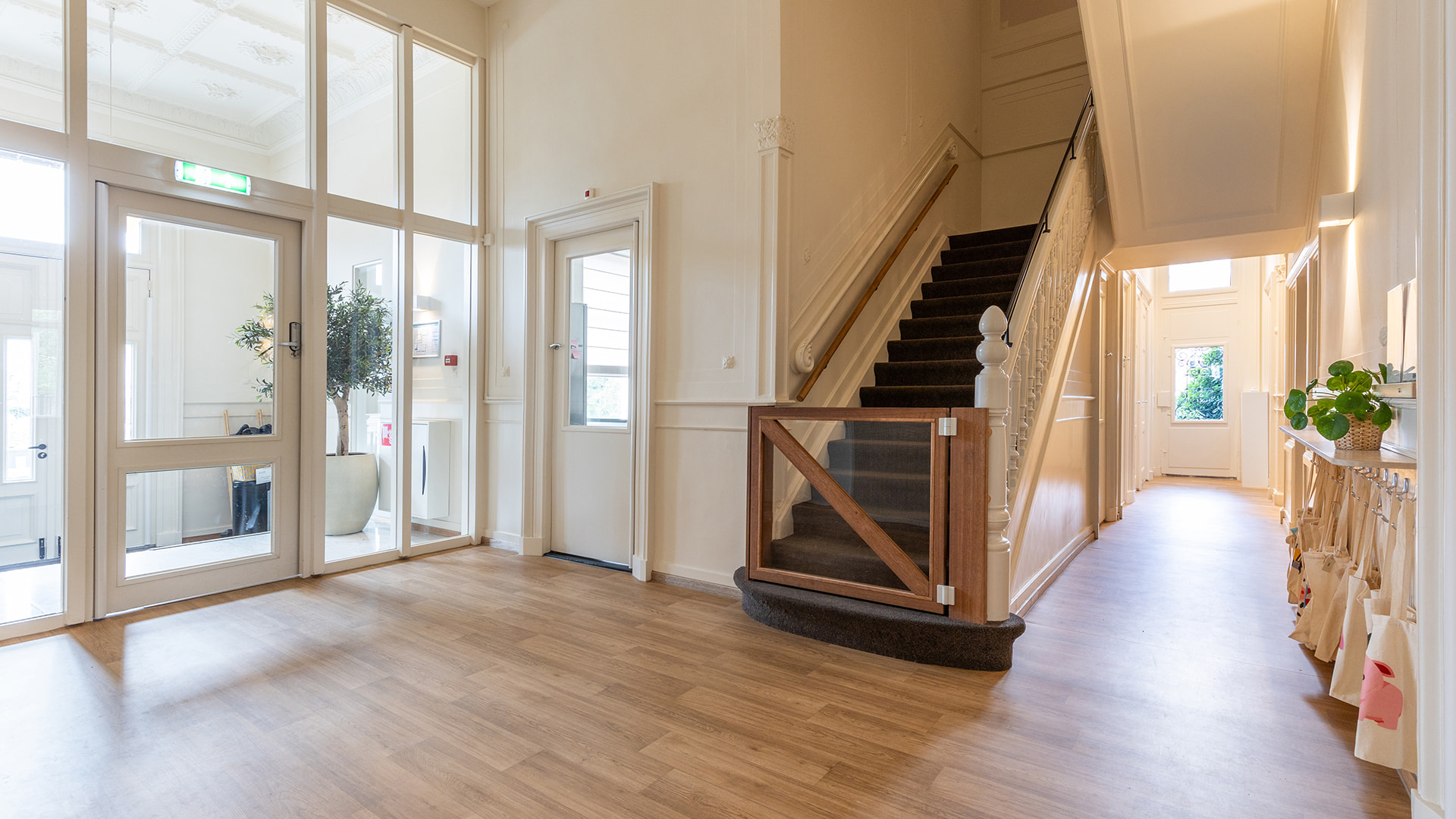 Onze nieuwste vestiging in Den Haag is gevestigd in een prachtig rijksmonument uit 1882 dat binnen én buiten helemaal aan onze wensen is aangepast. Zo grenzen de baby-slaapkamers direct aan de groepsruimte. Ook is er een snoezelruimte waar de baby’s tot rust kunnen komen. Op de dreumesgroep zijn er sensomotorische cirkels aan de muur bevestigd waar de kinderen aan kunnen voelen. En op de peutergroepen zijn er huisjes om te ontspannen of een boekje te lezen. Ook de peutergroepen hebben aansluitende slaapkamers, met een eigen toiletgroep en kleine wc’s.