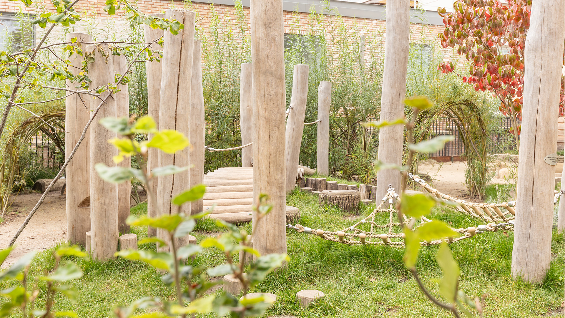De tuin is een feest. Niet alleen volgens onze ouders... Een fantastische ruimte waar de kinderen op ontdekking kunnen gaan: touw-klimelementen, een ‘tankstation’ voor de fietsjes, een uitdagende helling waar je heerlijk je energie kwijt kunt en een zandbak die gevuld kan worden met water vanuit de grote waterboomstam. De afgeschermde babytuinen kijken uit op de grote tuin. Ze hebben een kleine zandbak en een klimelement om de motorische ontwikkeling te stimuleren.