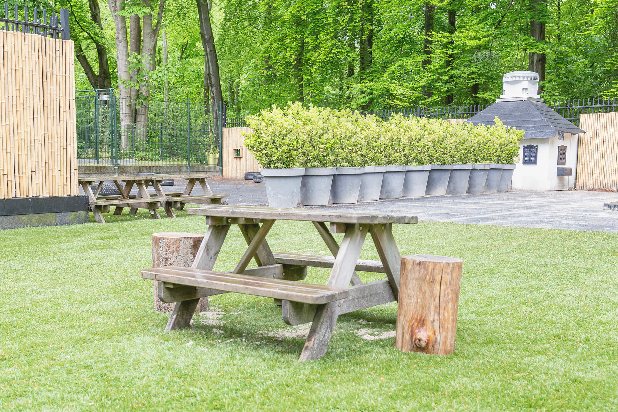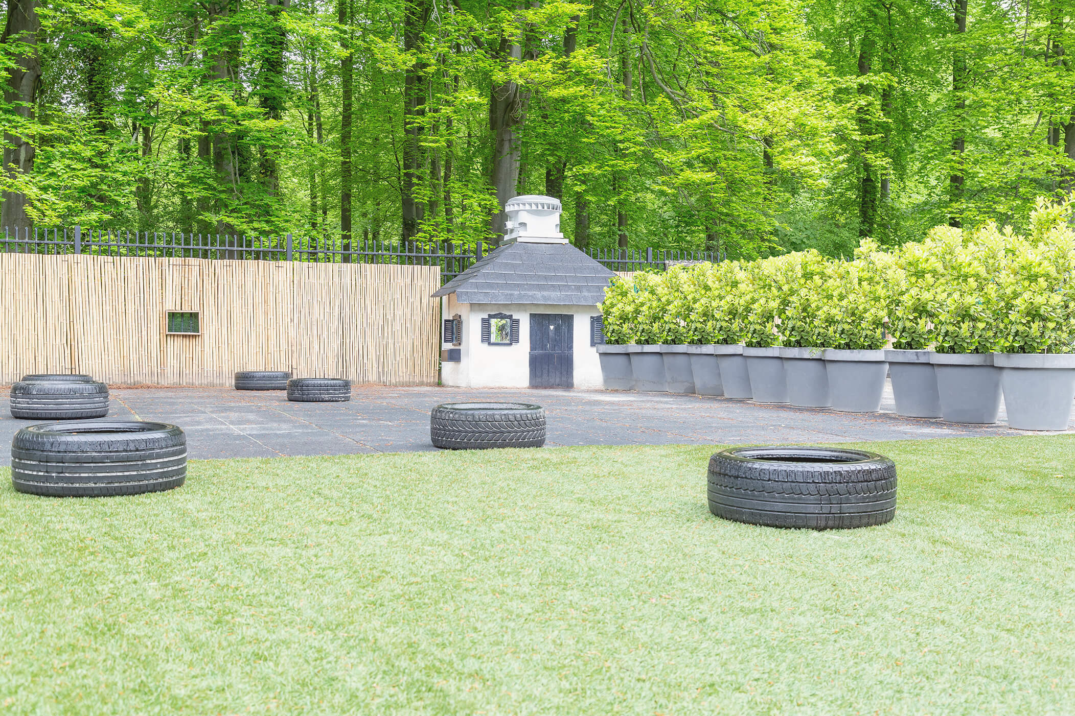 Avontuur in de ontdektuinOnze grote, schaduwrijke tuin nodigt echt uit om te gaan ontdekken en spelen. Voor de baby’s is een afgeschermd stuk, waardoor de oudere kinderen zich naar hartenlust kunnen uitleven op het ontdekpad, het fietsparcours en hun evenwicht kunnen oefenen op de halve autobanden.