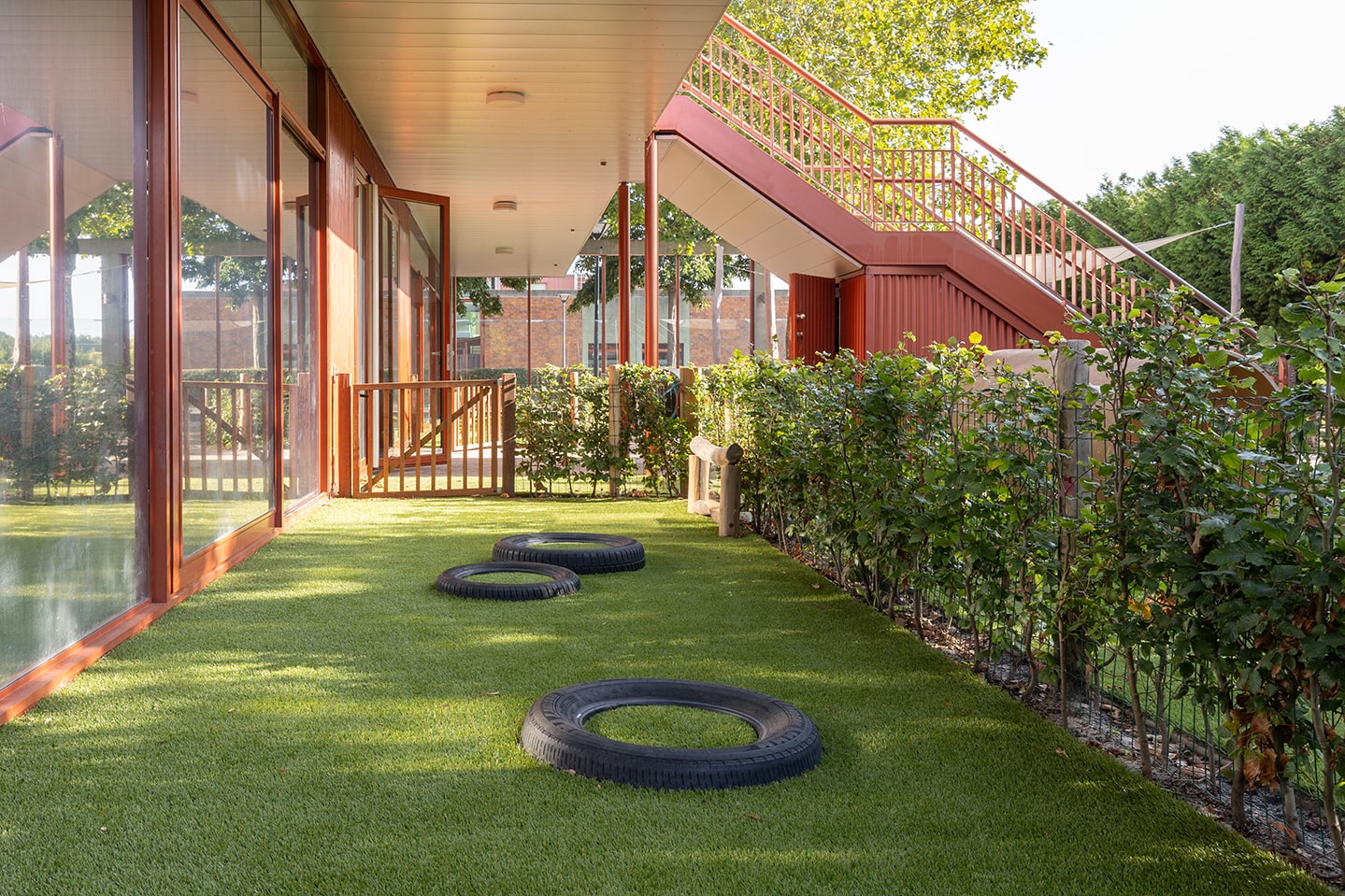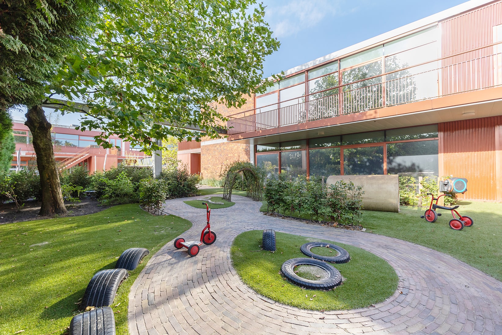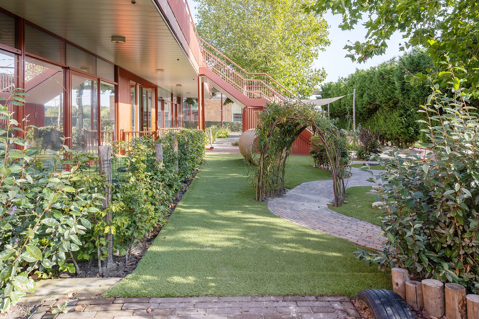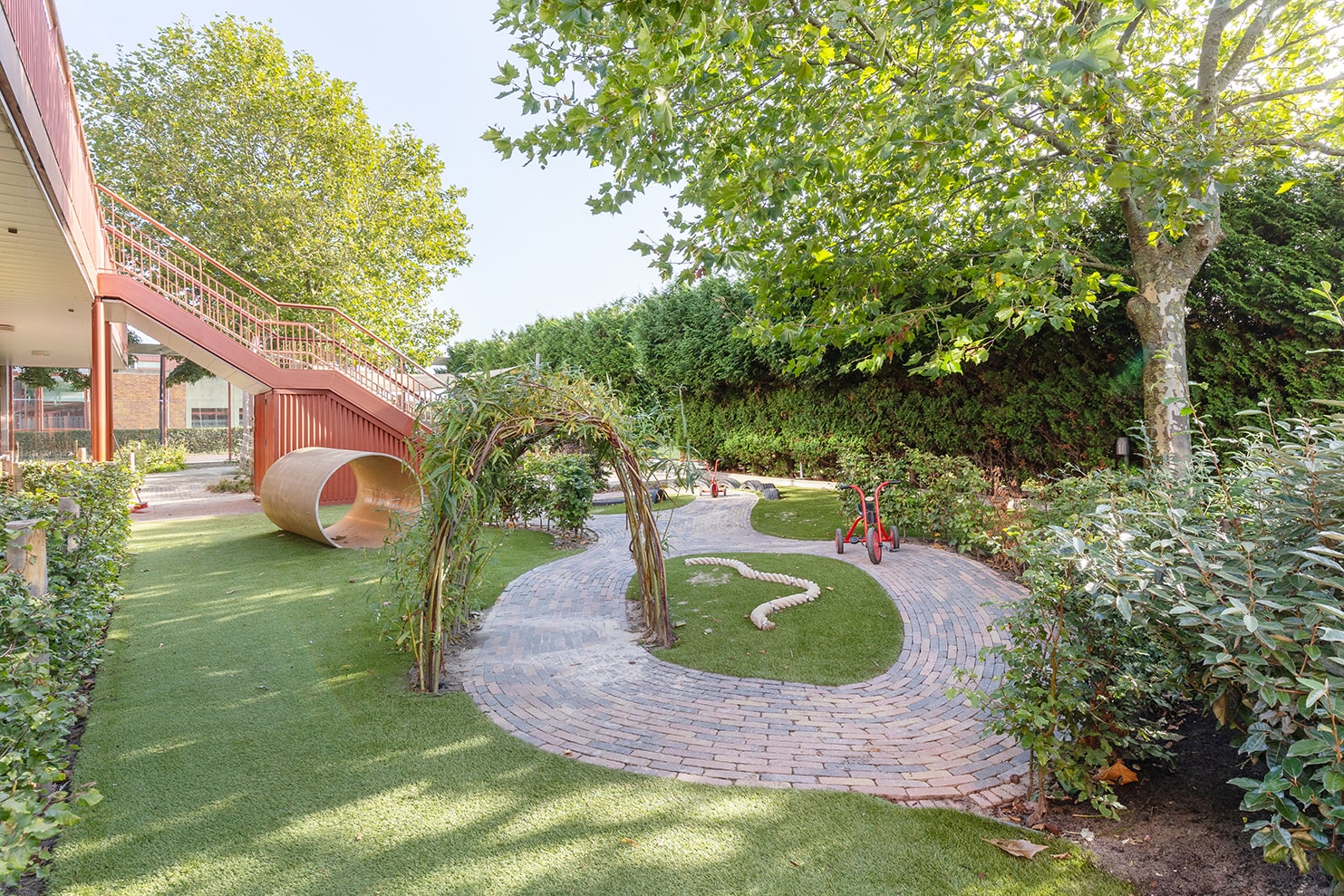 Kinderen ervaren buiten meer vrijheid en zelfstandigheid. Daar hebben we onze tuin dan ook helemaal op afgestemd. Elke groep heeft een eigen stuk, en ook de allerkleinsten genieten van de buitenlucht in hun afgeschermde gedeelte. De kinderen kunnen zich in de tuin verstoppen, gezellig samen komen of juist even alleen zijn. Niet iedereen wil altijd en alleen maar rennen, toch?