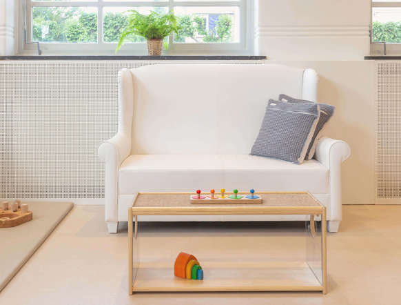 Alle groepen in ons monumentale kinderdagverblijf zijn lekker ruim opgezet. Dat geeft overzicht en rust. De grote ramen en openslaande deuren naar de tuin zorgen daarbij voor veel licht en een fijne sfeer. Door deze fijne sfeer komen onze speel- en ontdekhoeken goed tot hun recht. Het zwart-wit hoekje bijvoorbeeld: dat hebben we speciaal voor de jongste baby's ingericht, omdat zij het contrast tussen zwart en wit de eerste maanden het beste zien.