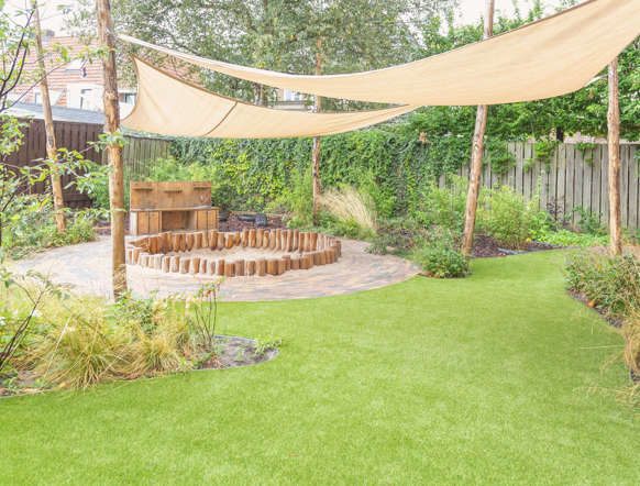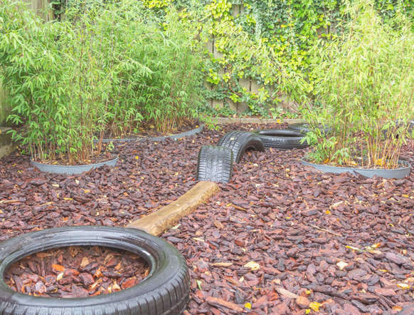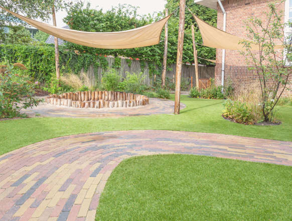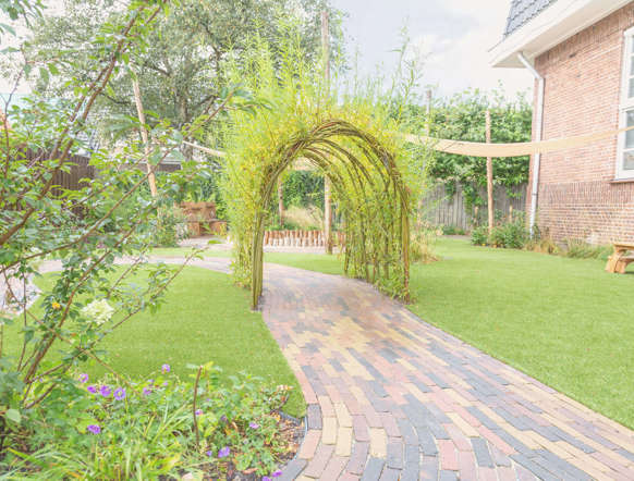 Kinderen hebben buiten meer vrijheid en ervaren meer zelfstandigheid. Onze nieuw aangelegde, schaduwrijke tuin is daar dan ook helemaal op afgestemd. Ze kunnen er fietsen, klimmen, gezellig samenkomen of zich verstoppen in de bamboebosjes. De baby's genieten veilig van de buitenlucht in een eigen afgeschermd gedeelte.