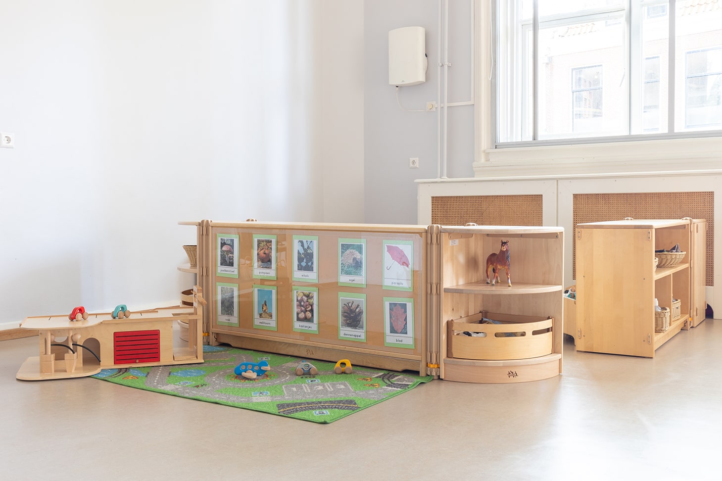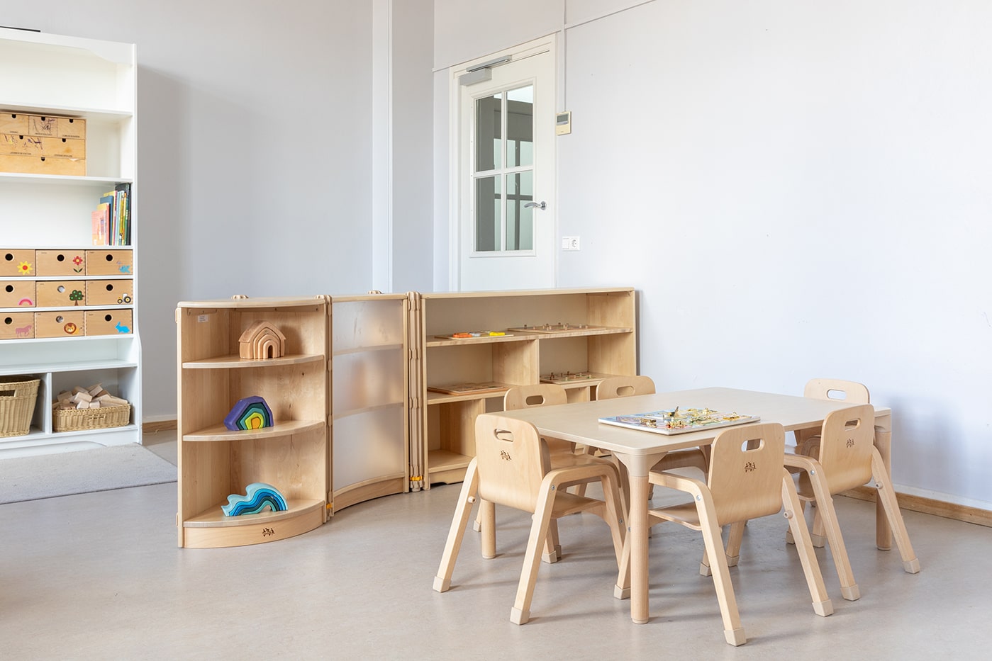 Op onze babygroepen werken we elke maand met een ander thema om de zintuigen te prikkelen. In verschillende hoeken hebben we plekjes gemaakt waar je baby naar toe kan kruipen om spelmaterialen te ontdekken. De hoeken zorgen voor beperking van de prikkels, zo wordt je kindje minder afgeleid en kan het beter in zijn of haar spel blijven. Ook de dreumesen en peuters bieden we rust én uitdaging.