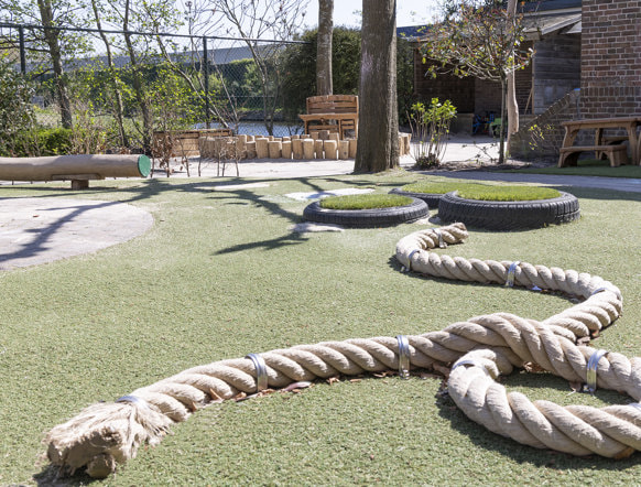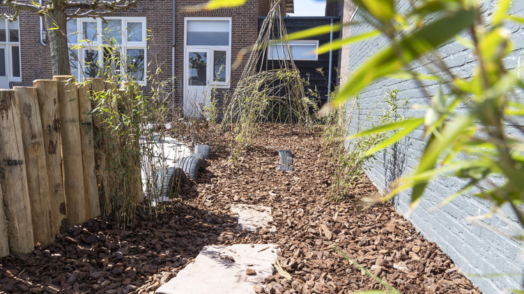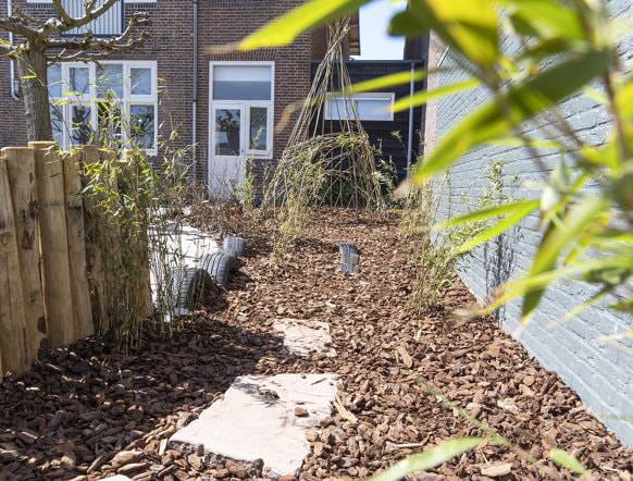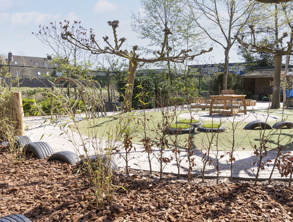 Avontuur in de ontdektuinOnze grote, schaduwrijke tuin nodigt echt uit om te gaan ontdekken en spelen. Voor de baby’s is een afgeschermd stuk, waardoor de oudere kinderen zich naar hartenlust kunnen uitleven op het ontdekpad, het fietsparcours en hun evenwicht kunnen oefenen op de halve autobanden.