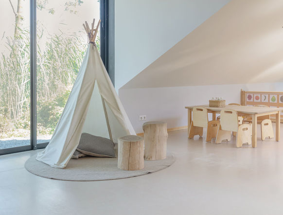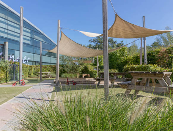 Spelen in de babytuinIn onze babytuin genieten de baby’s veilig van de buitenlucht in hun eigen afgeschermd tuin. Terwijl de oudere kinderen zich ook kunnen uitleven met spelen in de zandbak of kunnen racen op de kleine fietsjes of skelters.