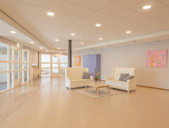 In de grote hal, als je binnenkomt, gaan we met de dreumesen en peuters gymen en zetten er regelmatig een parcours uit. Met alle groepen kunnen we er samenkomen en feestjes vieren. Onze vestiging zit naast de brandweerkazerne, dus er is altijd wat te beleven voor onze peuters.