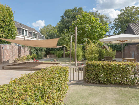 Avontuurlijke tuinOnze grote groene tuin met schaduwplekken nodigt echt uit om te gaan ontdekken en spelen. Alles zorgt ervoor dat een kind wordt uitgenodigd om te gaan ontdekken in onze avontuurlijke tuin.