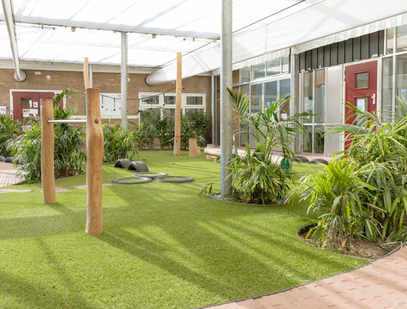 Spelen in de babytuinIn onze babytuin genieten de baby’s veilig van de buitenlucht in hun eigen afgeschermde tuin. Terwijl de oudere kinderen zich ook kunnen uitleven met spelen in de zandbak of kunnen racen op de kleine fietsjes of skelters.