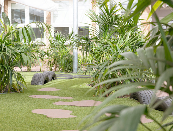 Op onze babygroepen geven we jouw kindje natuurlijk één-op-één aandacht. Er zijn fijne hoekjes waar het veilig kan spelen en ontdekken. Dankzij het glazen dak over de buitenruimte hebben we een eigen oranjerie gecreëerd, een heerlijke binnenspeelruimte met airco.