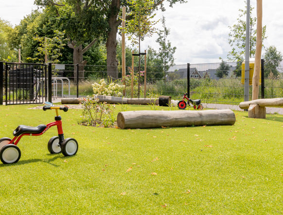 Buiten genieten kinderen van volop vrijheid en zelfstandigheid, dankzij onze uitgestrekte tuin die de hele vestiging omringt. Elke groep heeft zijn eigen buitenruimte, zodat zelfs de allerkleinsten veilig van de frisse buitenlucht kunnen genieten.